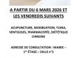 A PARTIR DU 6 MARS 2026 ET LES VENDREDIS SUIVANTS ACUPUNCTURE, MOXIBUSTION, TUINA, VENTOUSES, PHARMACOPÉE, DIÉTÉTIQUE...